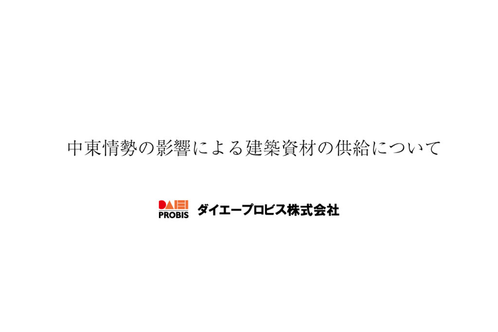 現在、報道にもありますとおり、中東情勢の悪化に伴い、住宅設備機器や各種建築資材の原料となるナフサなどの供給が不安定な状況となっております。