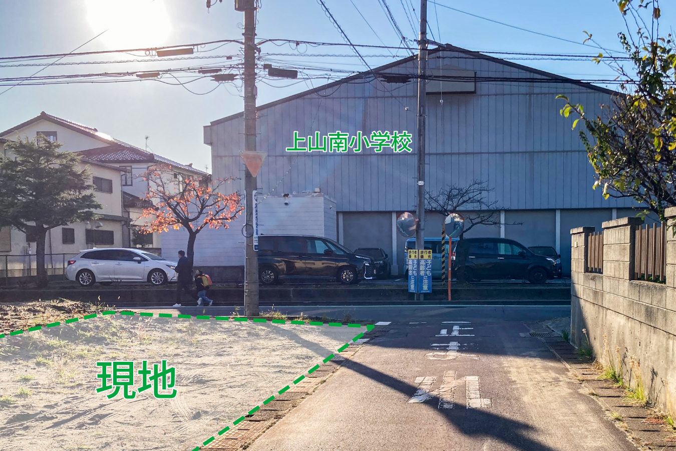 道路の向こうは上山南小、そのお隣が上山中学校学。