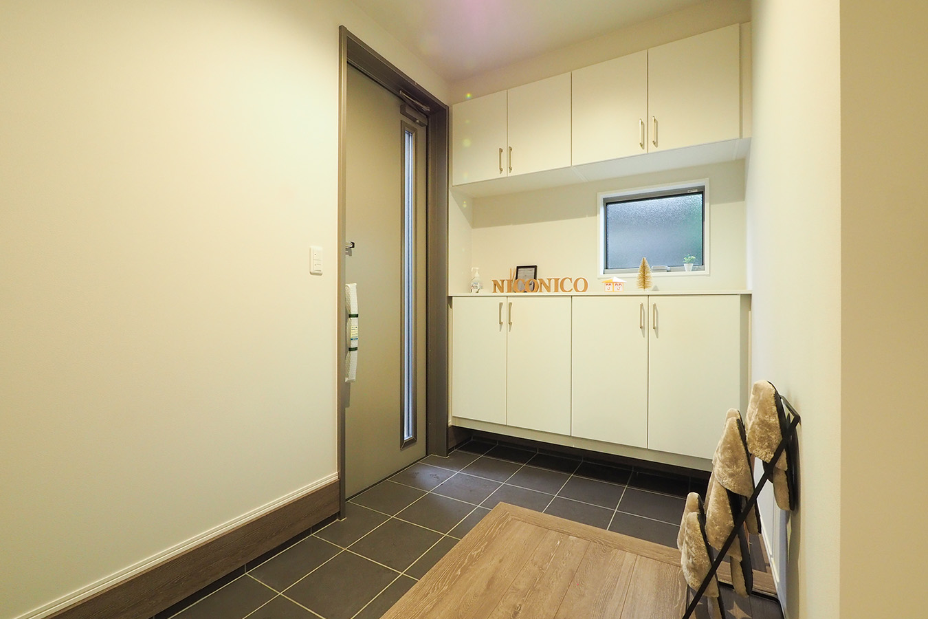 玄関には、外と室内をつなぐ便利な土間スペースを設けました。