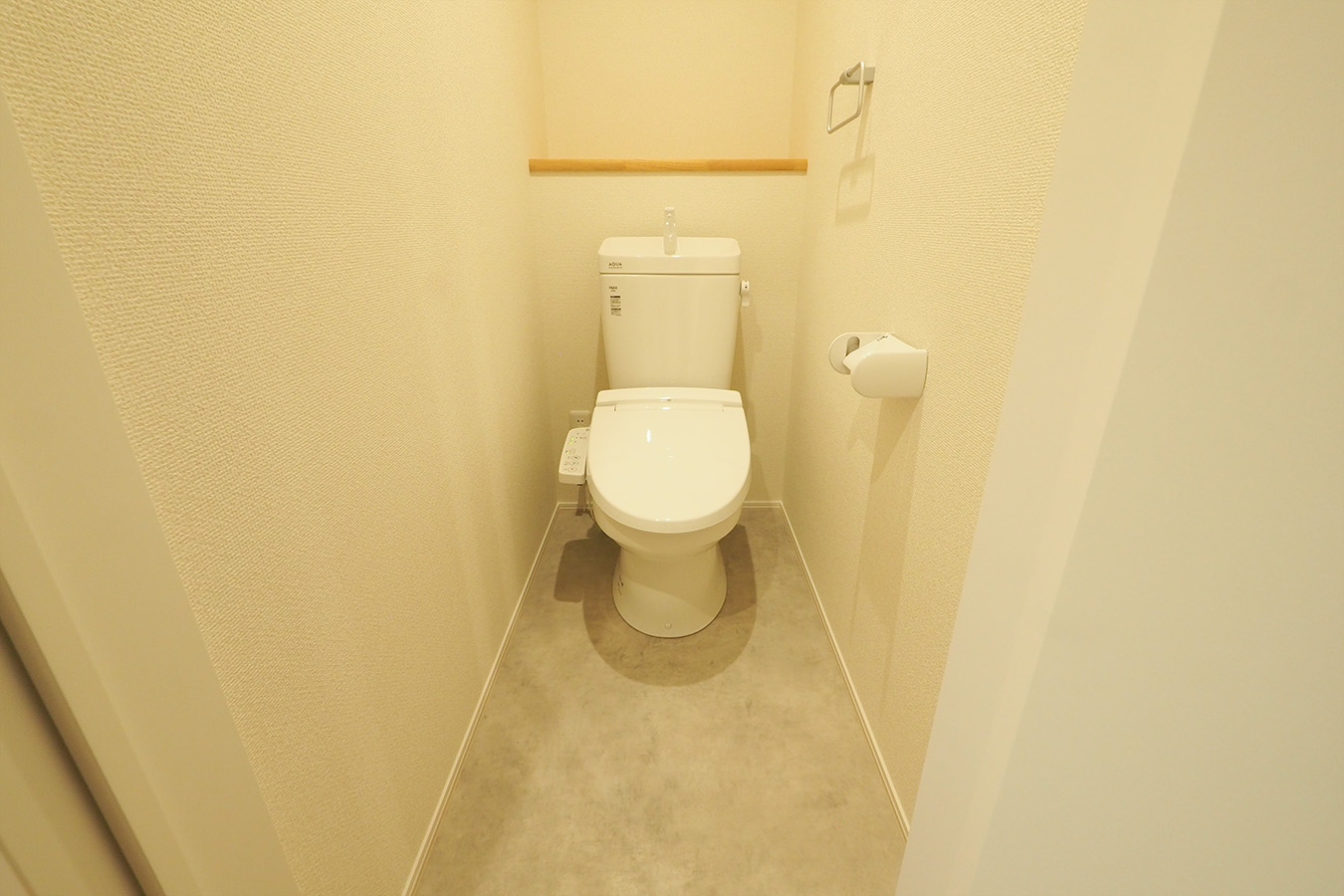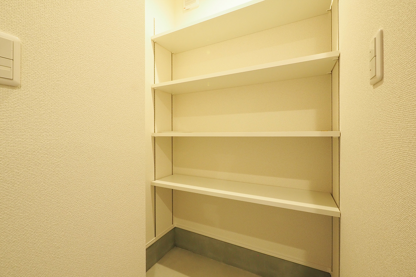 トイレットペーパーやティッシュBOXのストック置きや掃除用品スペース、