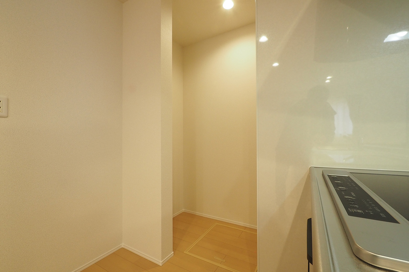 週末のまとめ買いした食料品やストック品もリビングから見えずにスッキリ収納できます!