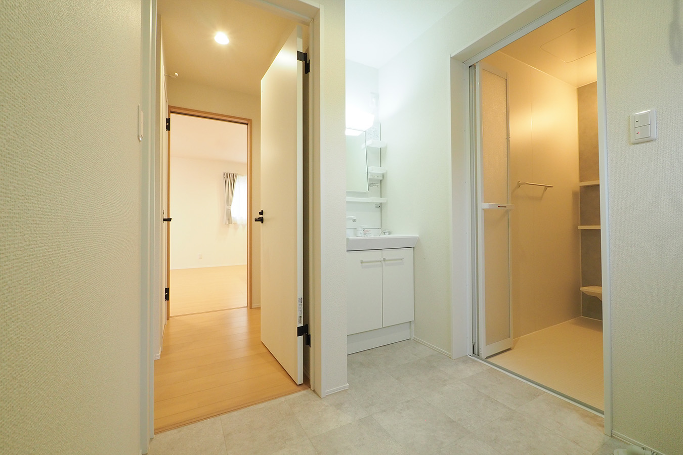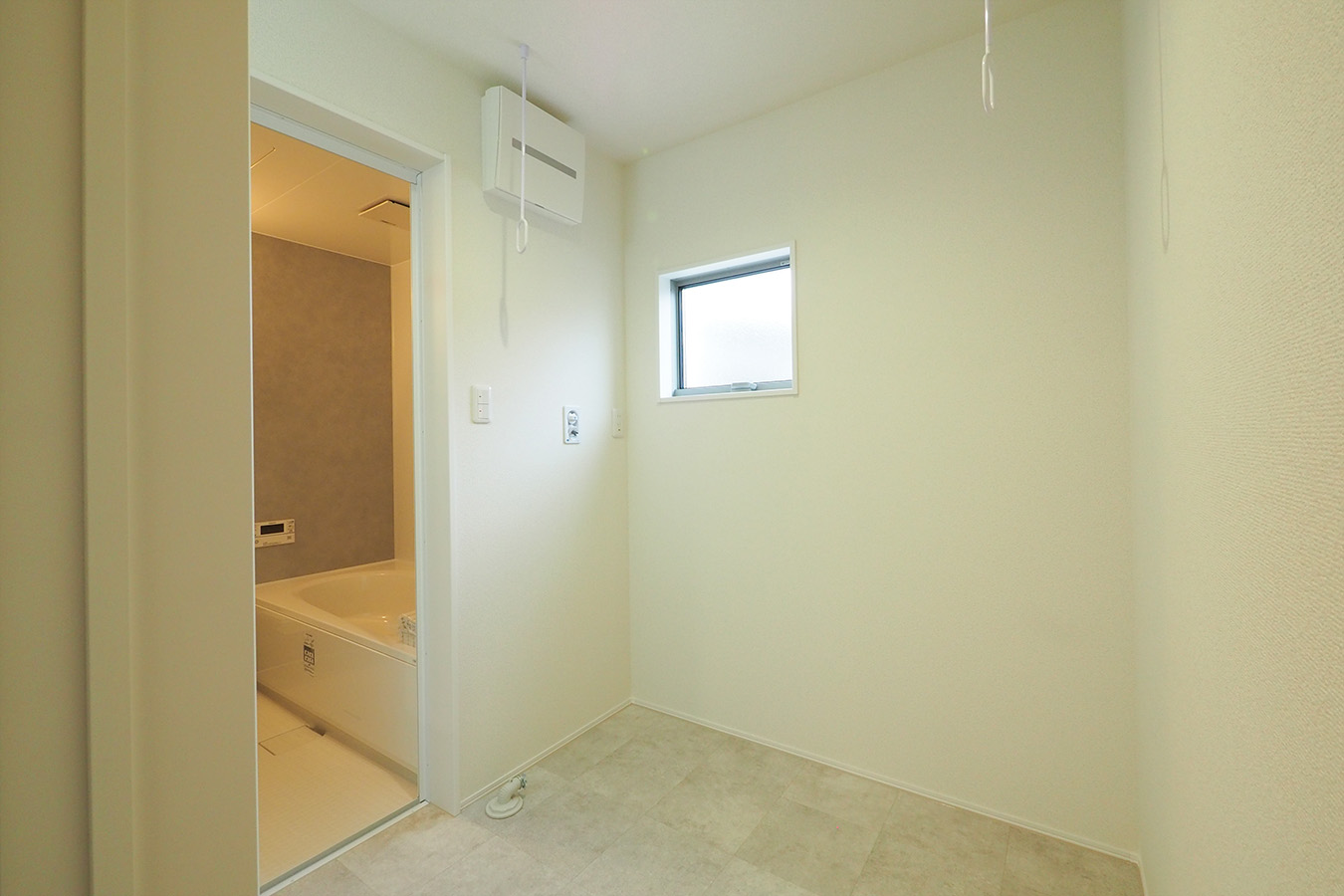 • 洗面脱衣室では、洗濯物が干せるので便利です。