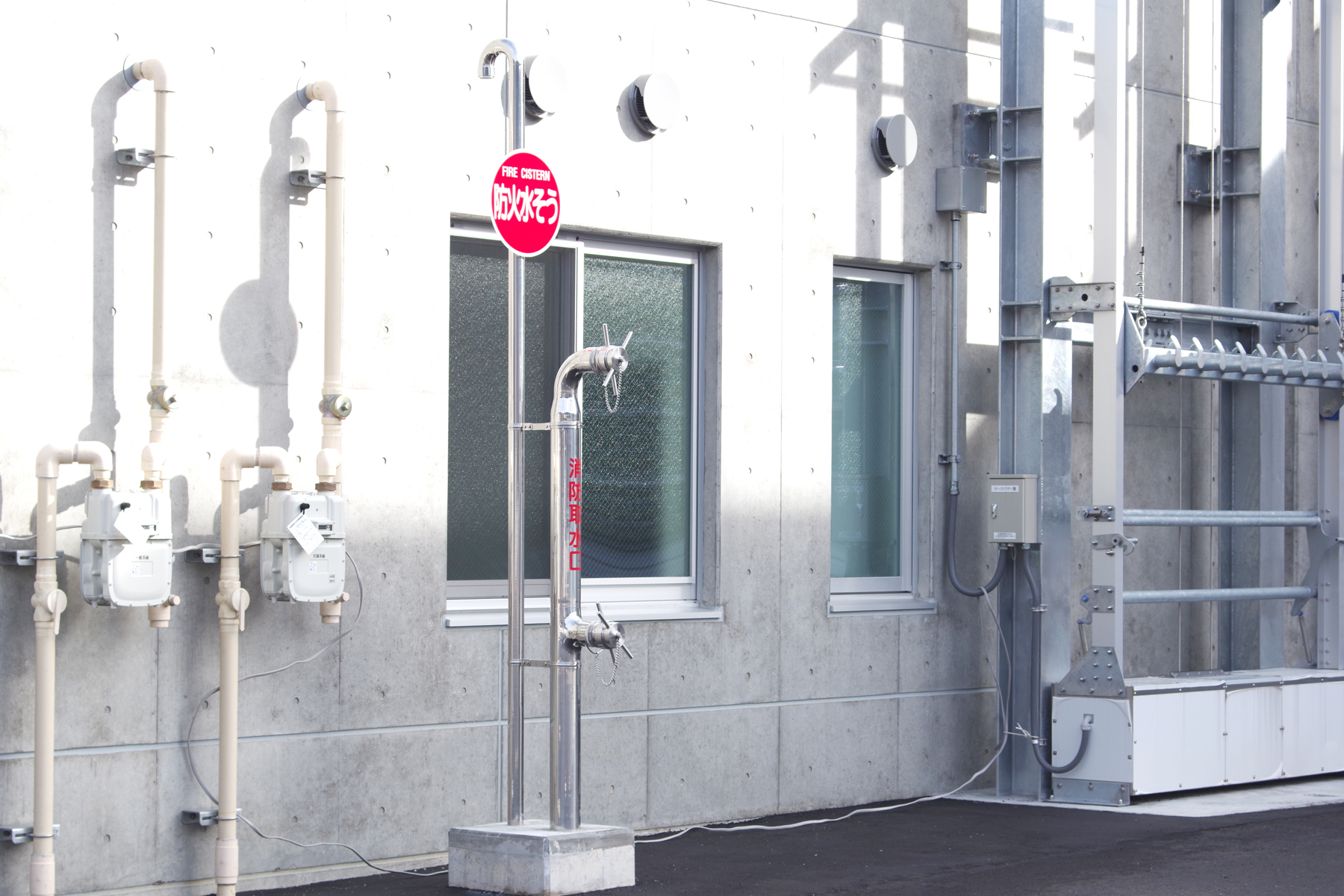 同一敷地内にある防災ヘリポートの運航を考慮した、機能的な配置及び構造としています。